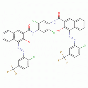 Anglický alias: Pigment červený 242; PR242; Sandorin Scarlet 4RF; 2-naftalénkarboxamid, N, N '- (2,5-dichlór-1,4-fenylén) bis- [4 - [[2-chlór-5- (trifluórmetyl) fenyl] azo] -3-hydroxy-3-hydroxy -; (4Z, 4'E) -N, N '- (2,5-dichlórbenzén-1,4-diyl) bis (4 - {[2-chlór-5- (trifluórmetyl) fenyl] hydrazono} -3-oxo- 3,4-dihydronaftalen-2-karboxamid); 4- [2-chlór-5- (trifluórmetyl) fenyl] azo-N- [2,5-dichlór-4 - [[4- [2-chlór-5- (trifluórmetyl) fenyl] azo-3-hydroxynaftalén -2-karbonyl] amino] fenyl] -3-hydroxynaftalén-2-karboxamid; N, N '- (2,5-dichlór-1,4-fenylén) bis [4 - [[2-chlór-5- (trifluórmetyl) fenyl] azo] -3-hydroxynaftalén-2-karboxamid] CAS číslo: 52238 -92-3